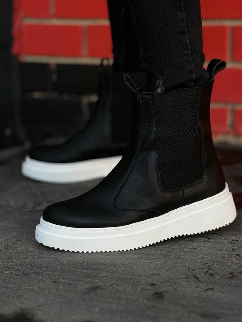 KB-X8 Kuback Beyaz Siyah Cilt Yüksek Taban Günlük Spor Ayakkabı