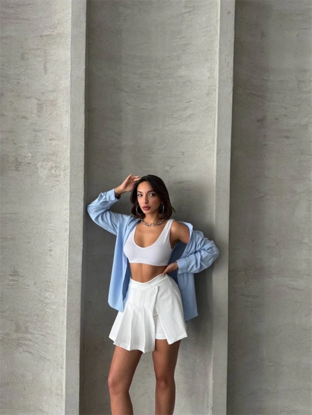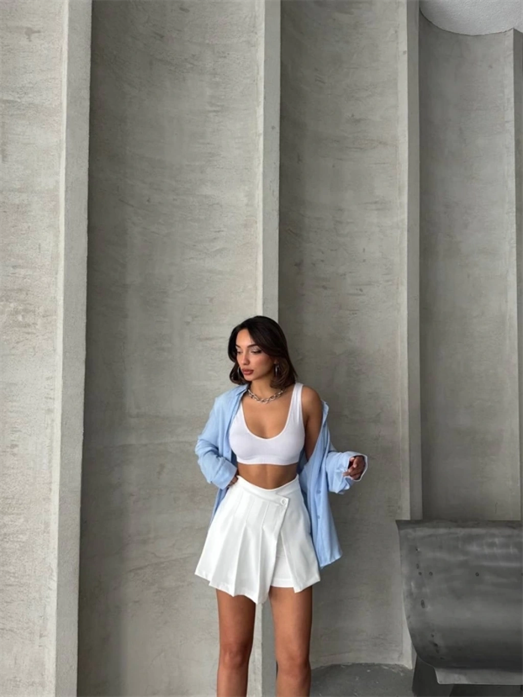 15351928 Beli İp Bağlamalı Kadın Penye Short Bej